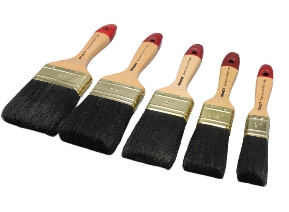 Constructie: De kwasten hebben een geverniste beukenhouten steel, een roestvrijstalen (inox) bus en een traditionele touwwoeling. De kop is vol-gekit met 2-componentenmateriaal om het insijpelen van verf en haarverlies te voorkomen.