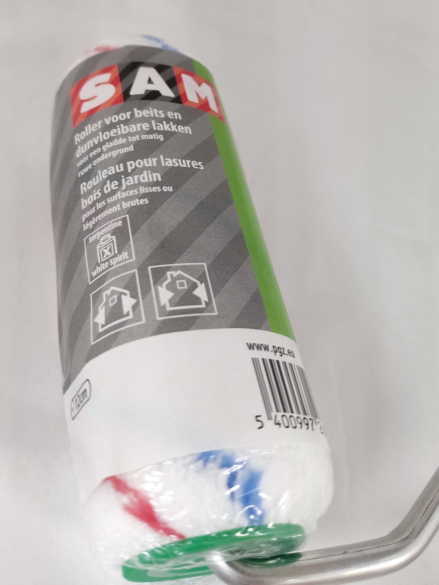 Roller van 12 cm inclusief beugel voor beits en andere dunvloeibare lakken en is geschikt voor gladde tot matig ruwe ondergronden.