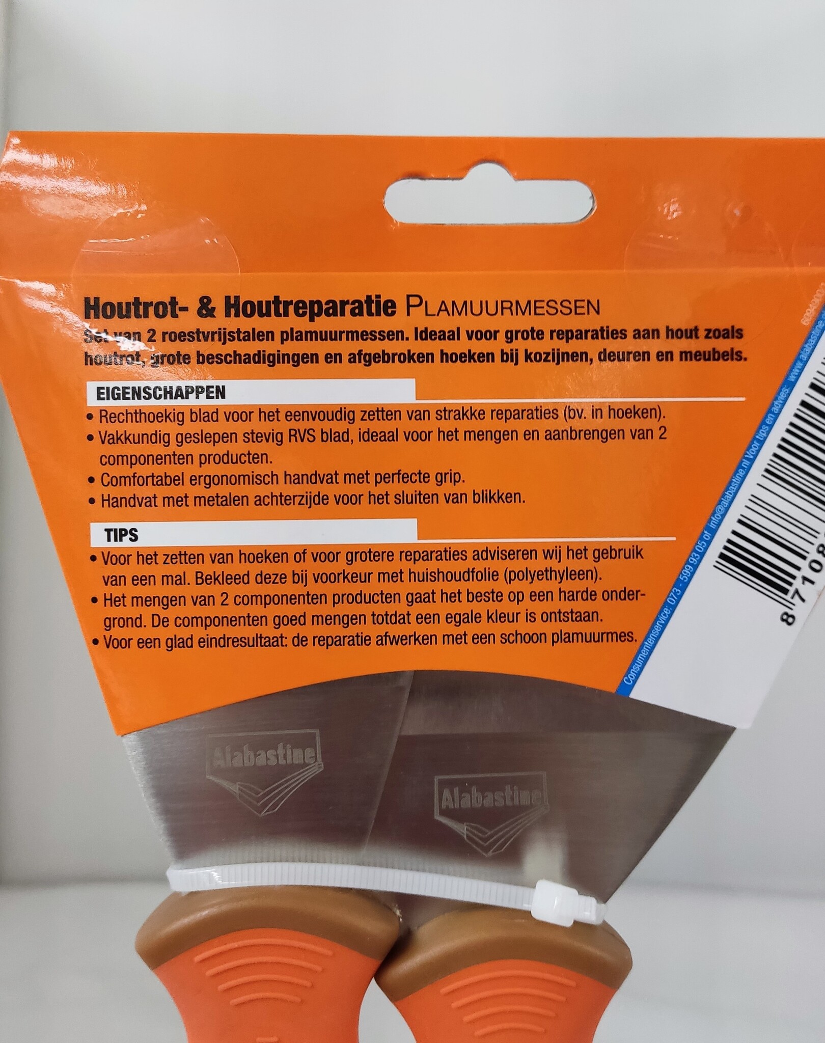 Alabastine Plamuur- & modeleermessen voor het mengen, aanbrengen en glad afwerken van 2 componenten hout(rot) vullers Set van 2 RVS messen