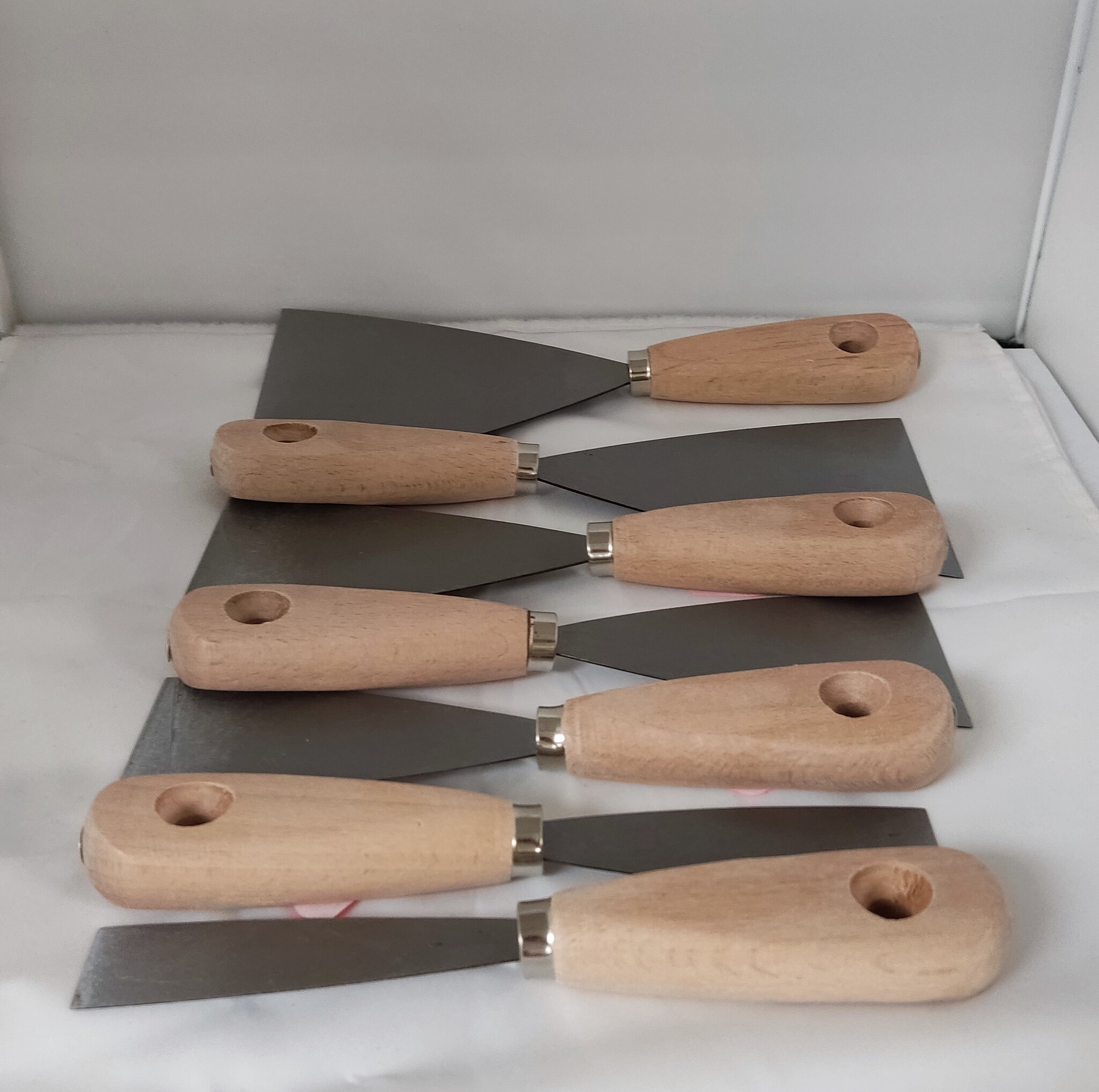 Verschillende maten plamuurmessen voor het afwerken van verschillende hout- en muurvullers en plamuren.